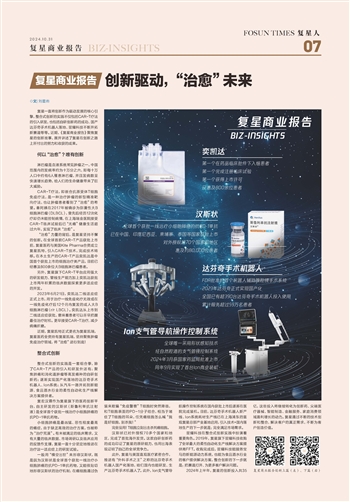 复星一直将创新作为驱动发展的核心引擎,整合式创新的实践不仅包括CAR-T疗法的引入研发,也包括自研创新药的成功、国产达芬奇手术机器人落地、翌耀科技不断开拓新赛道等等。近期,《复星商业报告》聚焦复星的创新故事,展开讲述了复星在创新之路上所付出的努力和收获的成果。