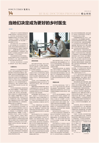 在复星健康首席执行官(CEO)、大湾区总院总院长、佛山禅医董事长胡航看来,乡村医生日常服务的群体相对固定,与城镇医疗机构的医生相比,接触的病例数量较少。这也导致部分乡村医生视野偏窄、成长速度较慢。帮助村医走出乡村,通过在城镇医疗机构培训累积经验,实现个人医疗能力提升,这正是乡村医生项目的价值所在。