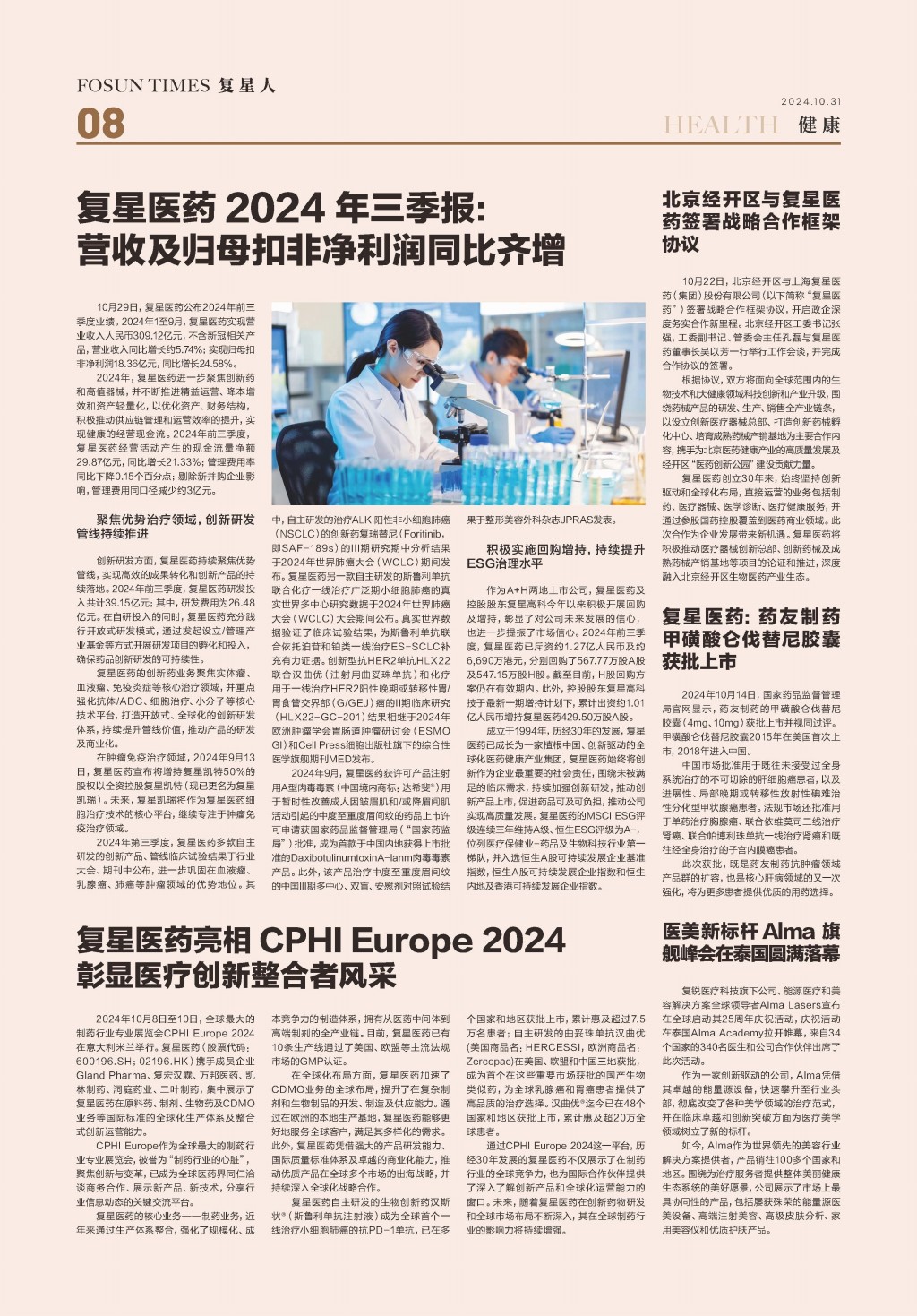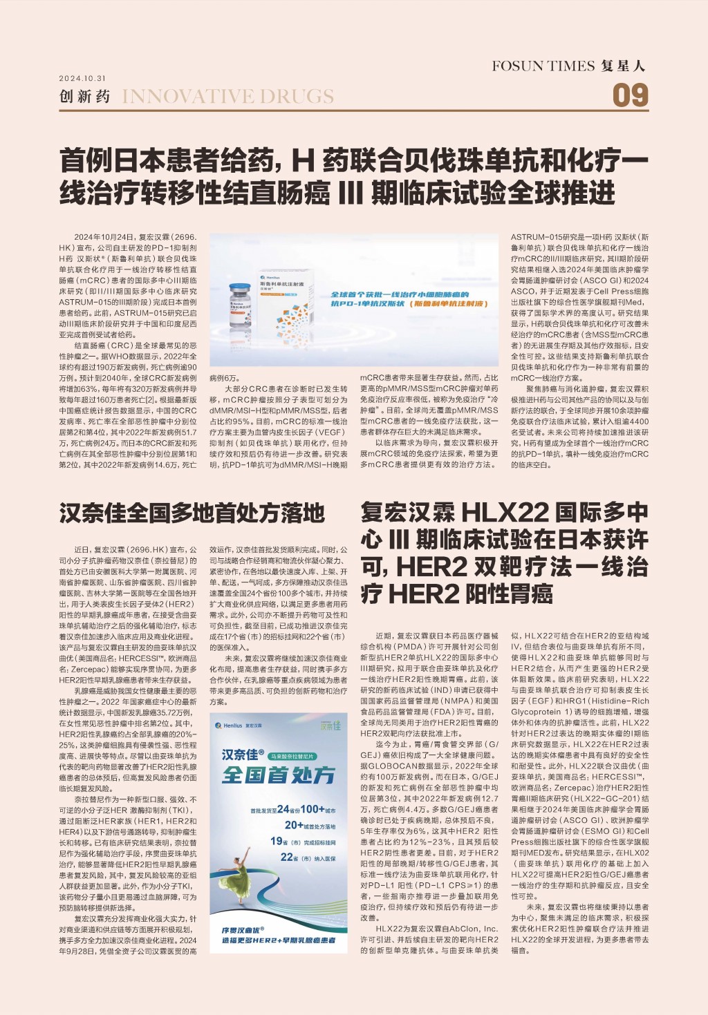 01 一版要闻 02 要闻 03 超级地中海 04 超级地中海 05 进博会 06 复星商业报告 07 复星商业报告 08 健康 09 创新药 10 快乐 11 快乐 12 富足・智造 13 暖心村医 14 暖心村医 15 环境|社会|公司治理 16 上新