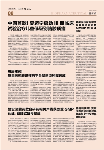7月28日,上海复星医药(集团)股份有限公司(“复星医药”)与纽科联合科技有限公司( “纽科” )今日共同宣布,双方就AR1001在大中华区,包括中国内地、中国香港特别行政区及中国澳门特别行政区(许可区域)的生产和商业化签订了独家许可协议。